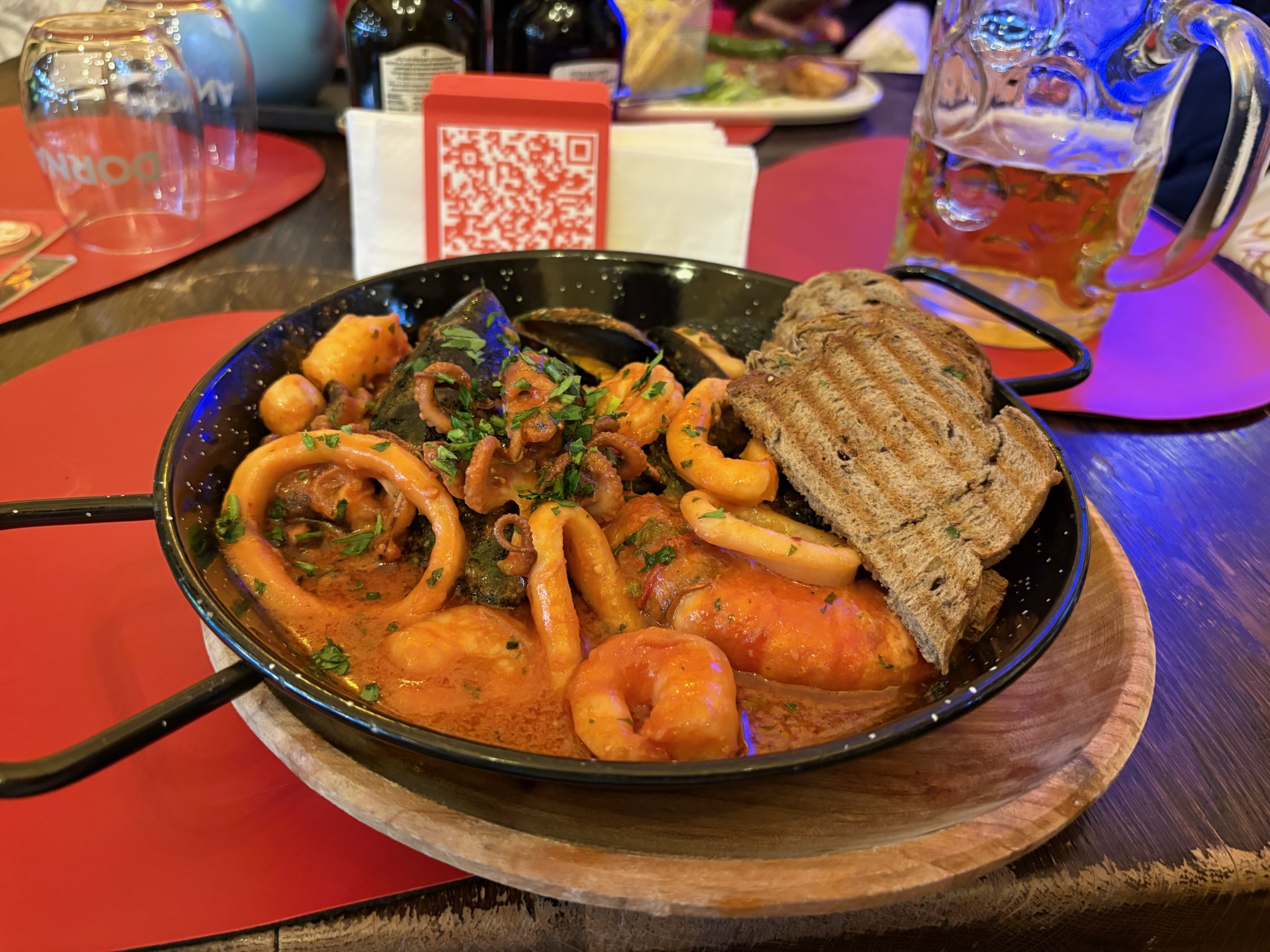お酒が進みそうな、味が濃いめなのが美味しいミックスシーフード煮込み。