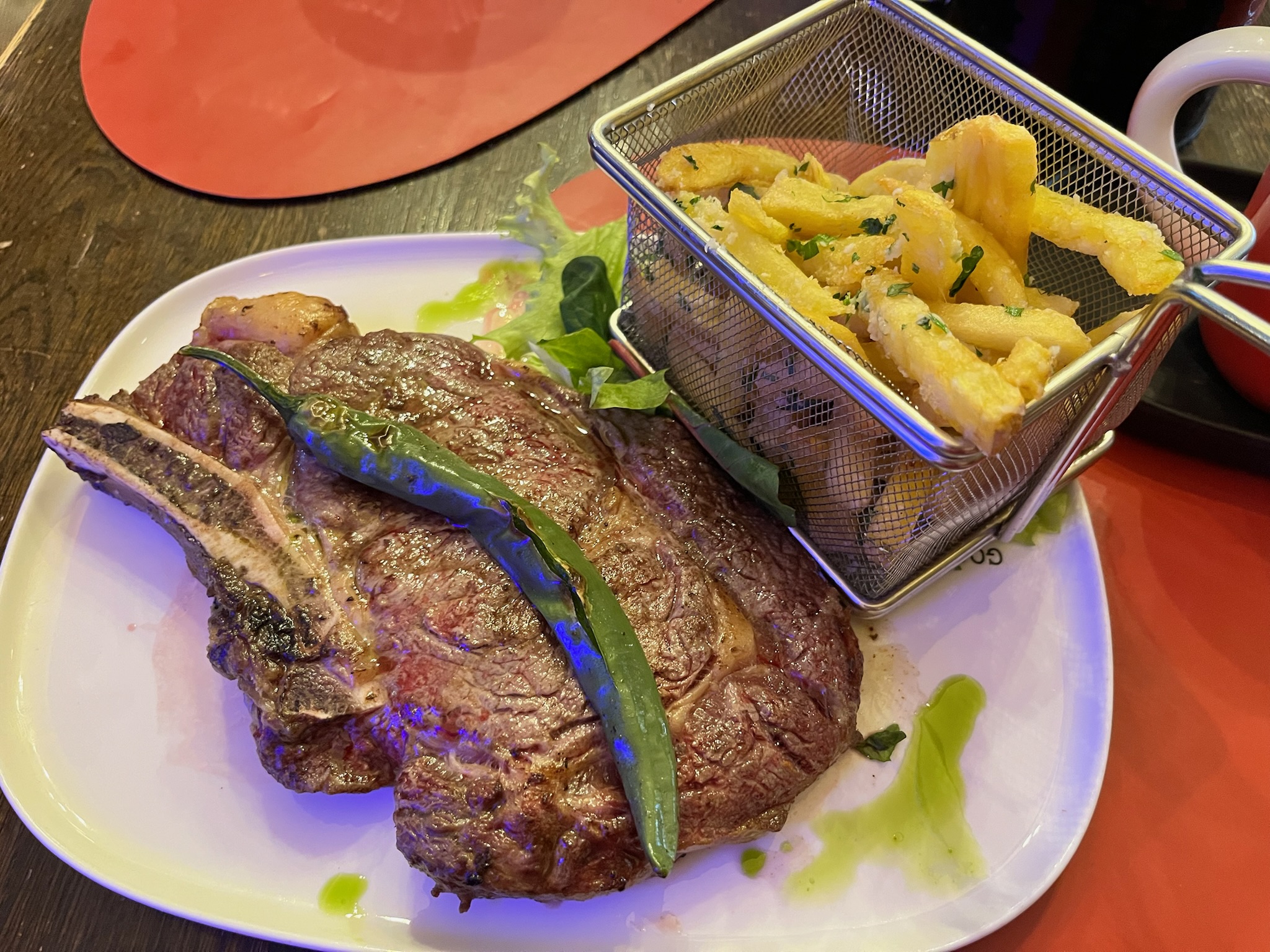骨付きステーキ500g。可食部は300〜400g。意外とペロリ。