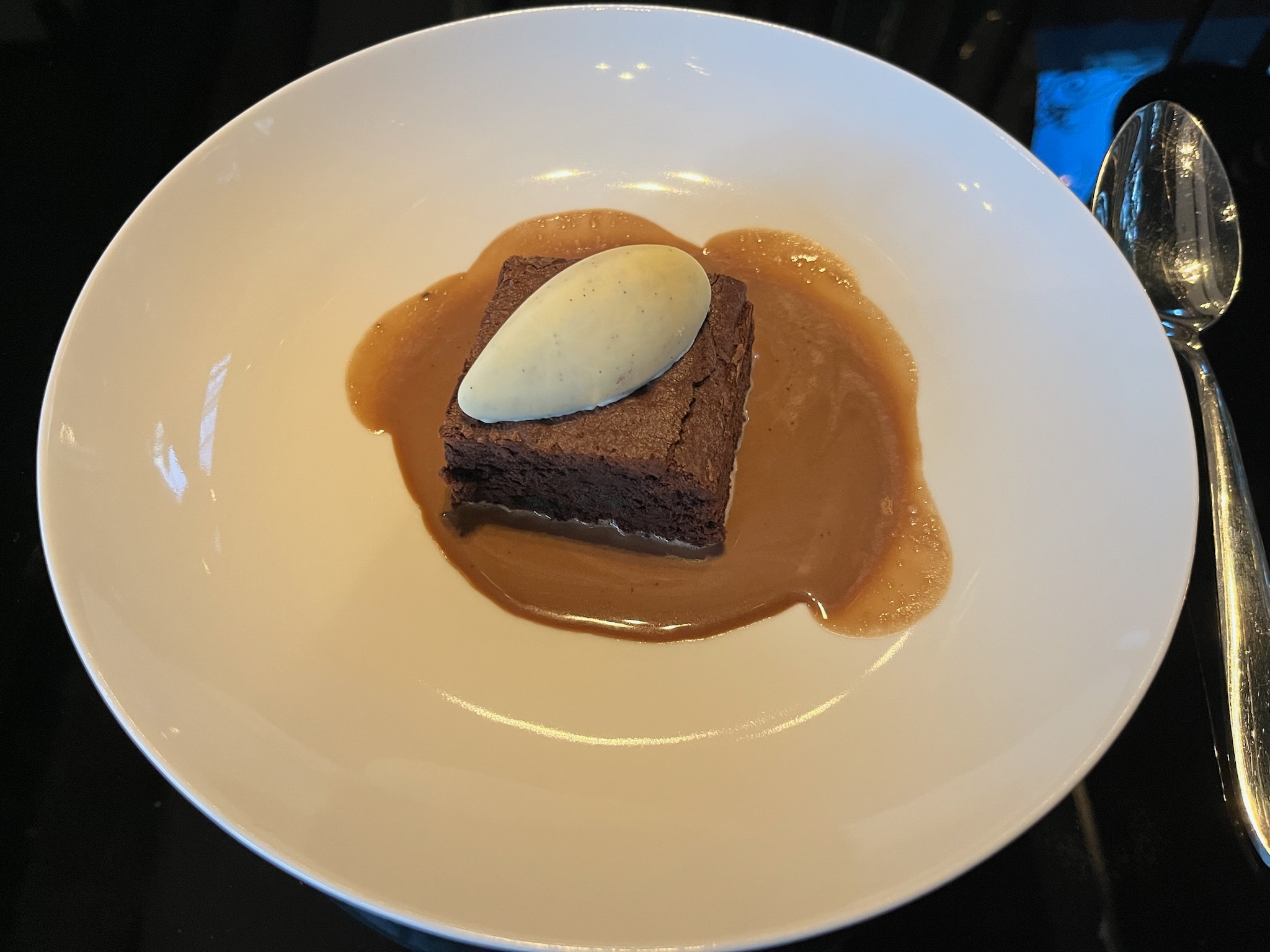バニラアイスが硬めですぐ溶けなかったので、温かいチョコとバニラが溶け合うのをゆっくり味わいました。