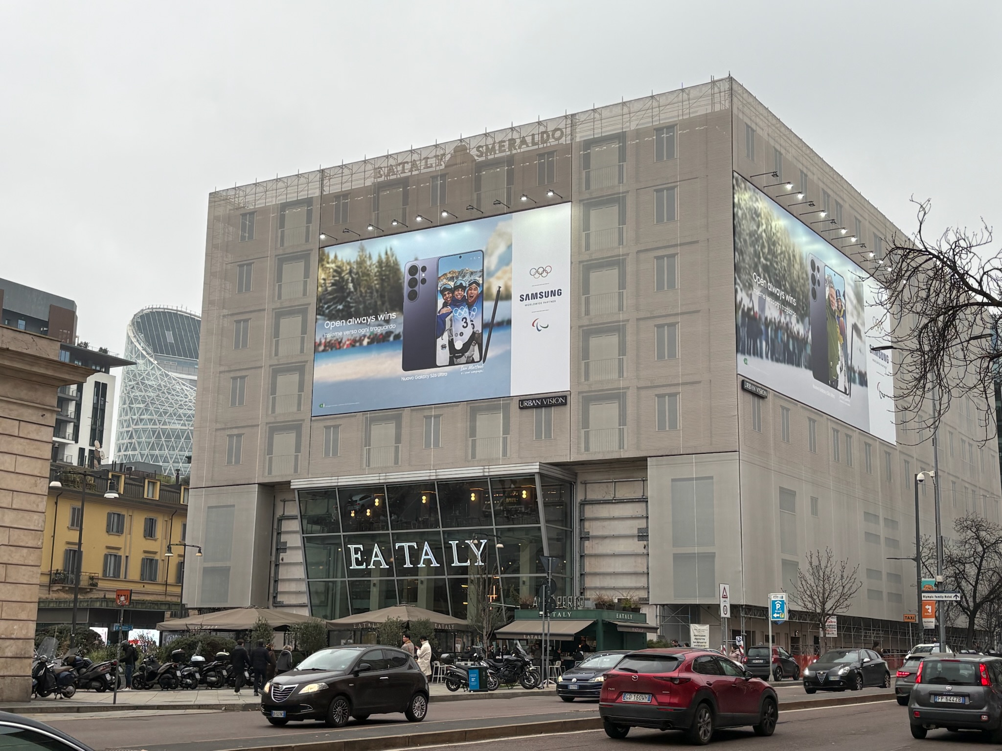 大きな円型のガラスの天井には、2026ミラノオリンピックのロゴが!