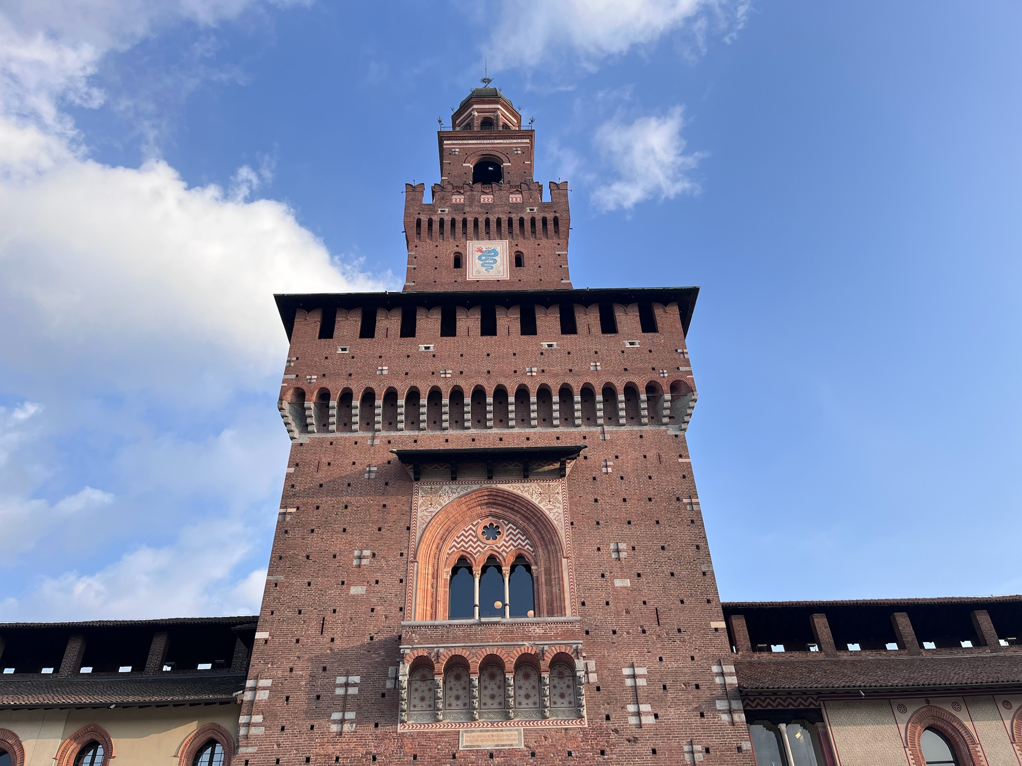 スフォルツェスコ城も美術品を多く所蔵していますが、中庭のみ散策しました。