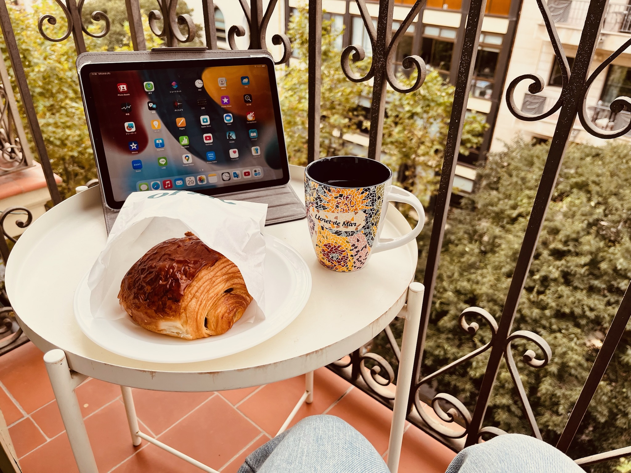 パンオショコラを自宅テラスで。