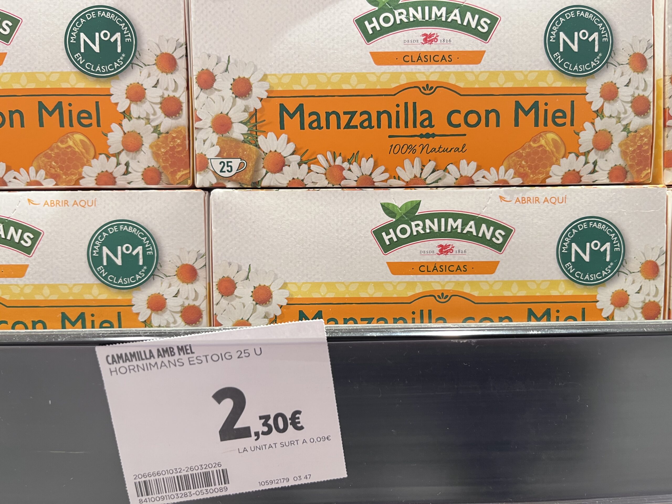 最も有名なバラマキスペイン土産の1つ、はちみつカモミールティー。