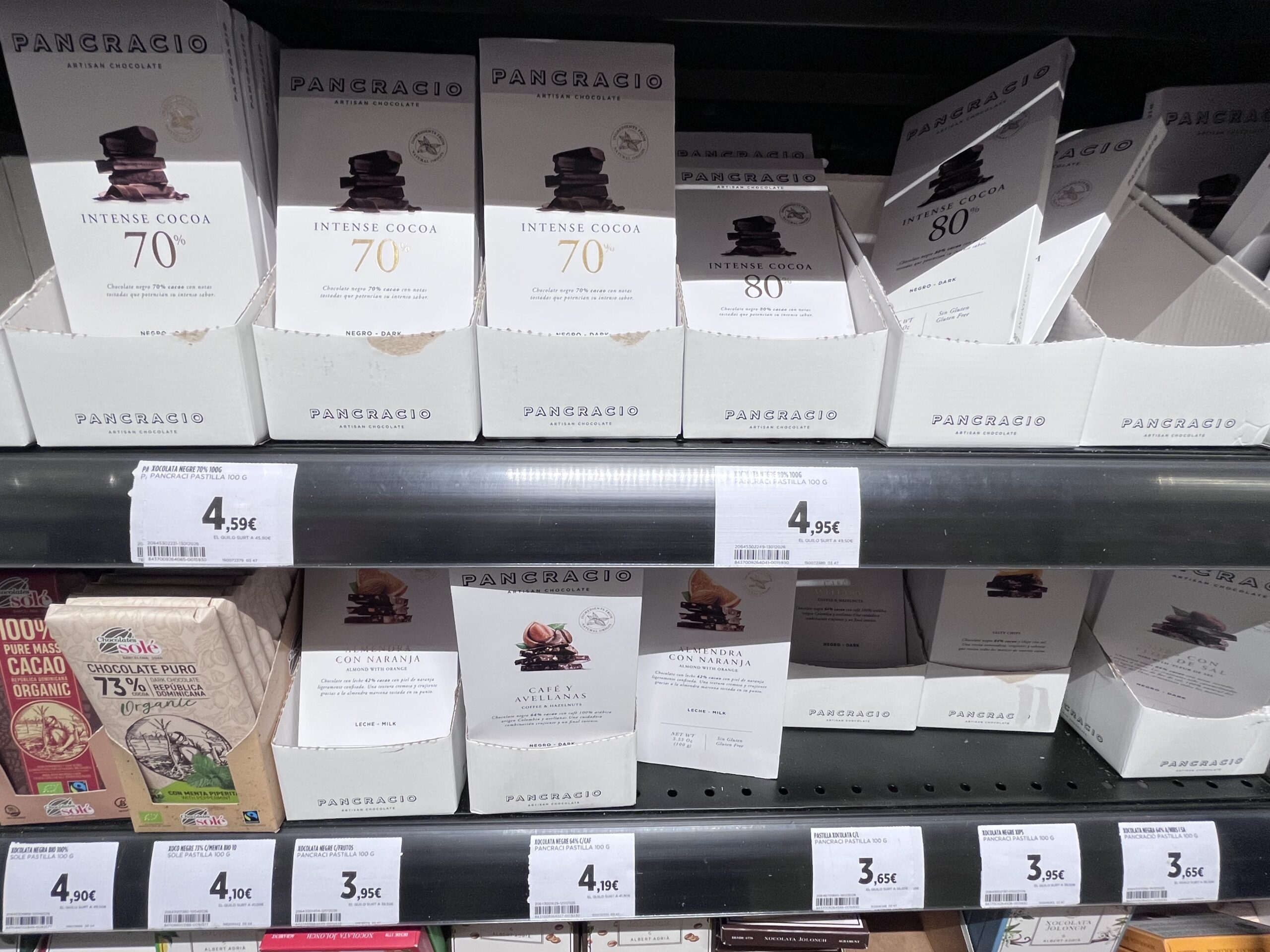 パンクラシオの板チョコ、お値段は4〜5ユーロ前後。