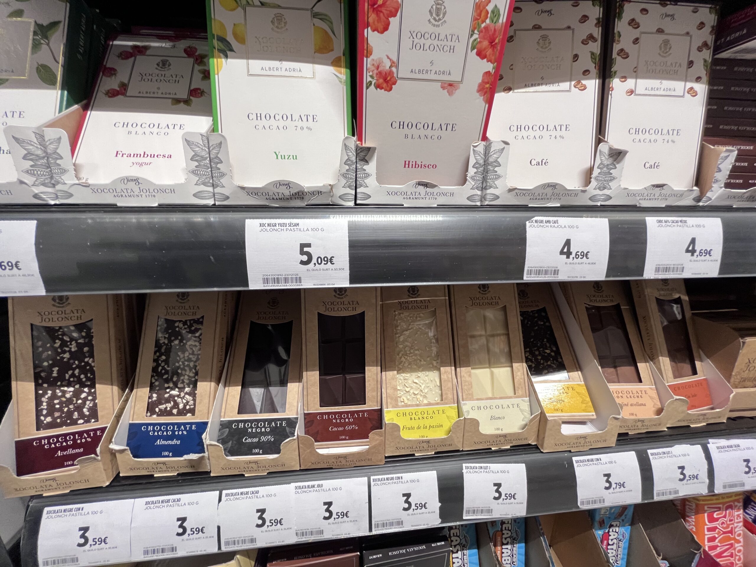 エルコルテイングレスではスペインブランドのチョコレートのバリエーションも豊富です。