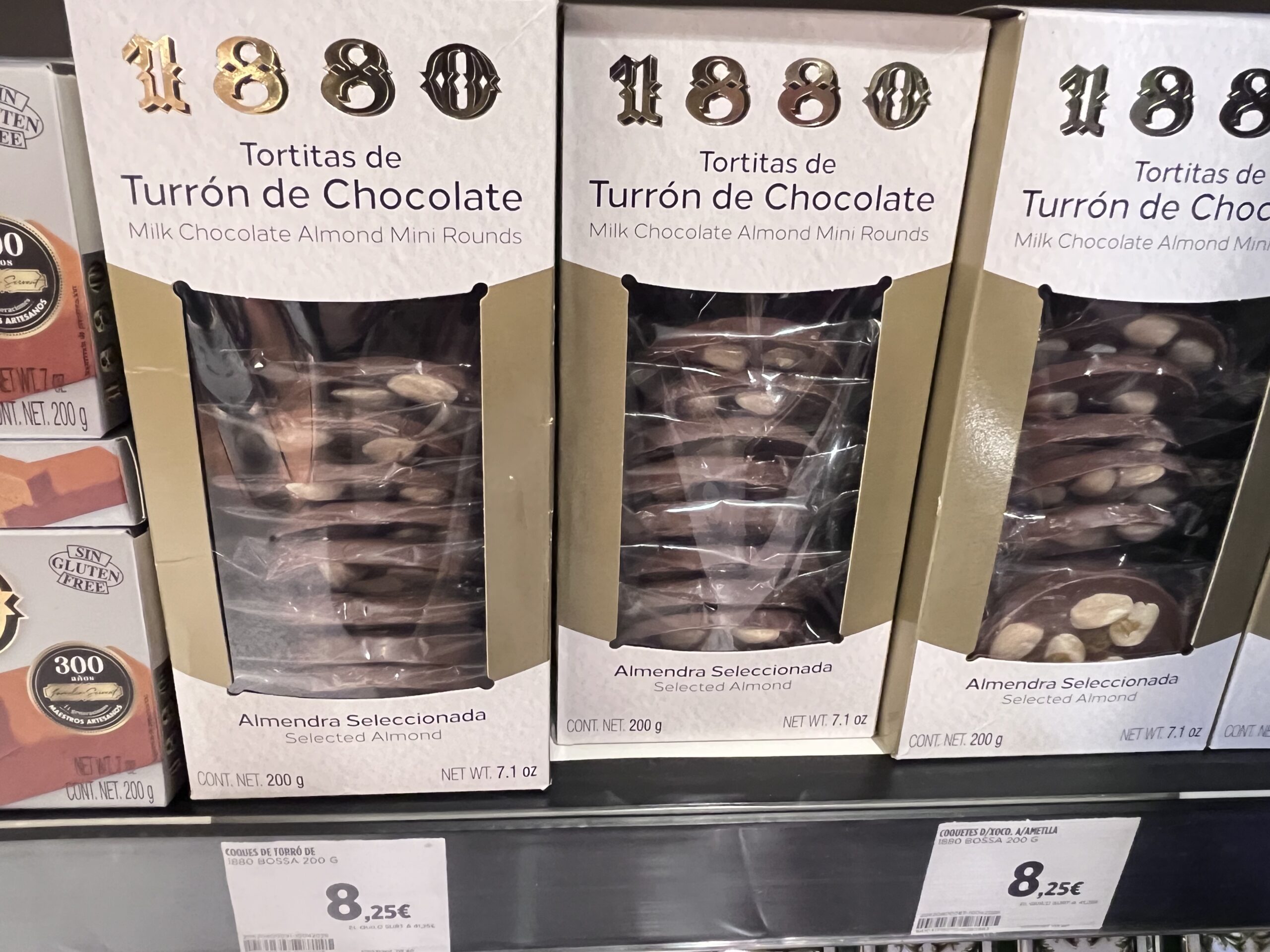 スペイン土産トゥロン(ヌガー)の伝統店の1つ、1880のアーモンド入りチョコレートトゥロン。