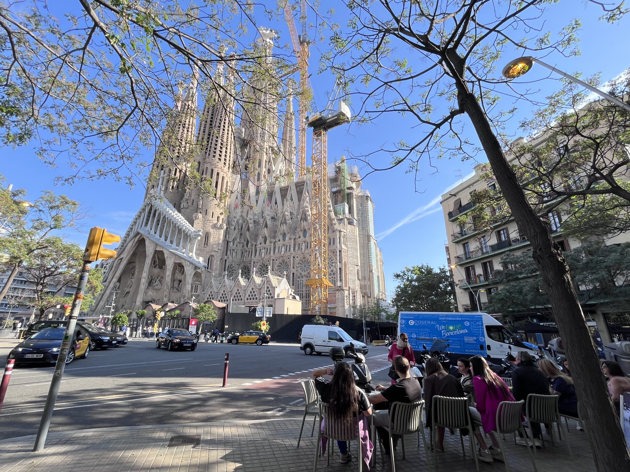 テラスから生誕のファサードがこの距離↓で見られる店舗がおすすめ。