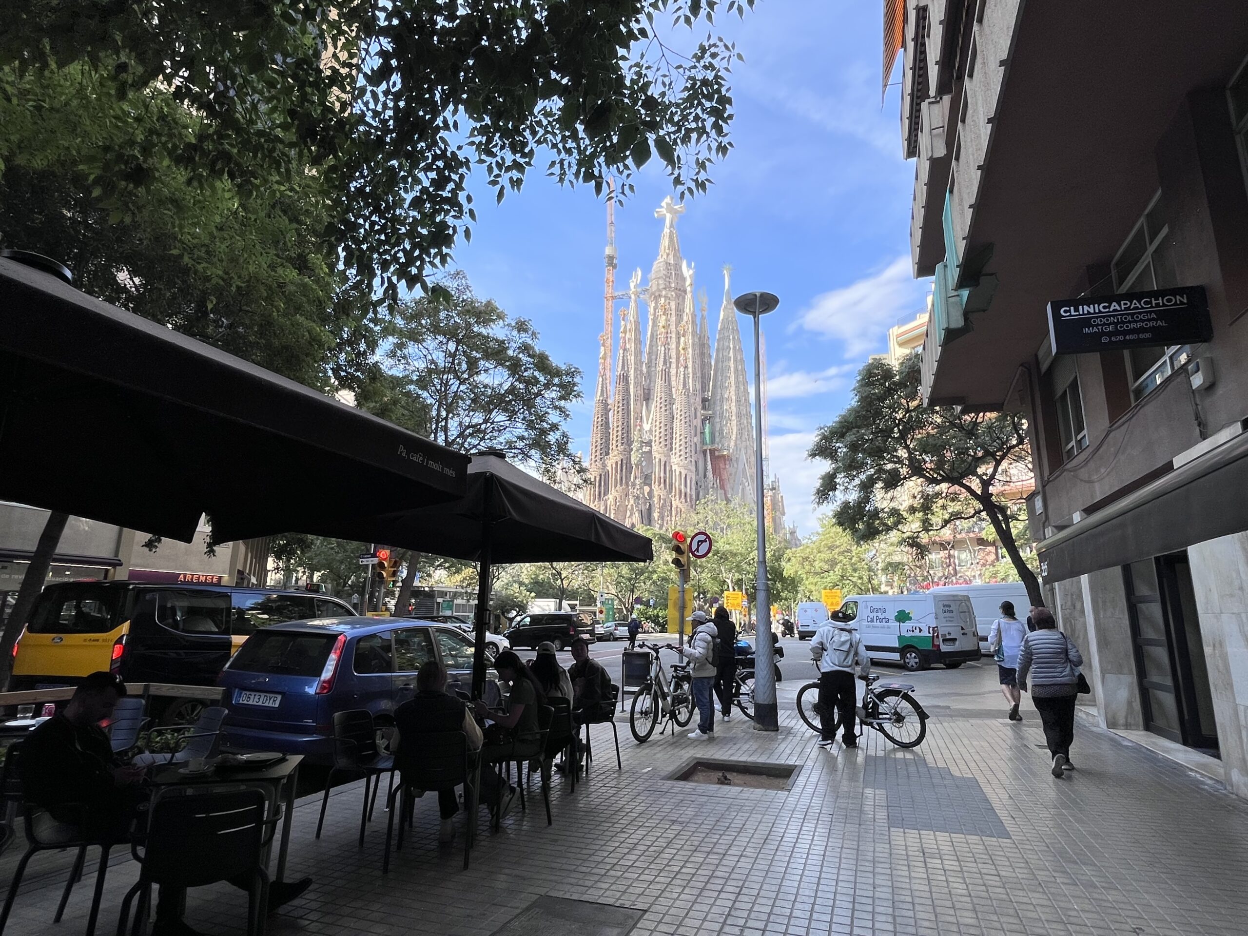 一見この通りはテラス席を有するお店が多く、サグラダファミリアもよく見えていい立地のため、観光客がたくさん利用しています。