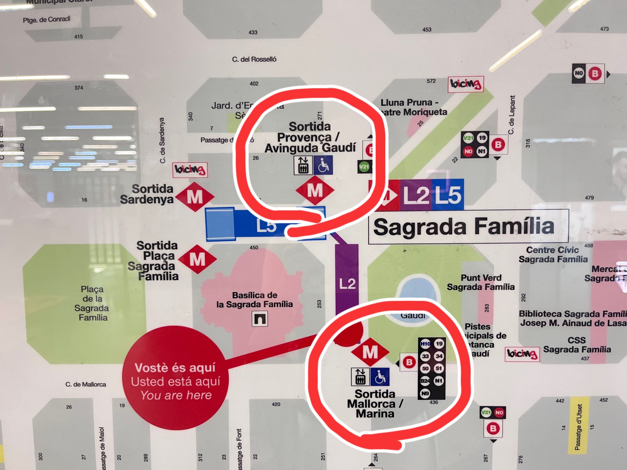 エレベーターがある出口は、生誕のファサード側でガウディ通りにも面している「Provença/Avinguda Gaudí 」と